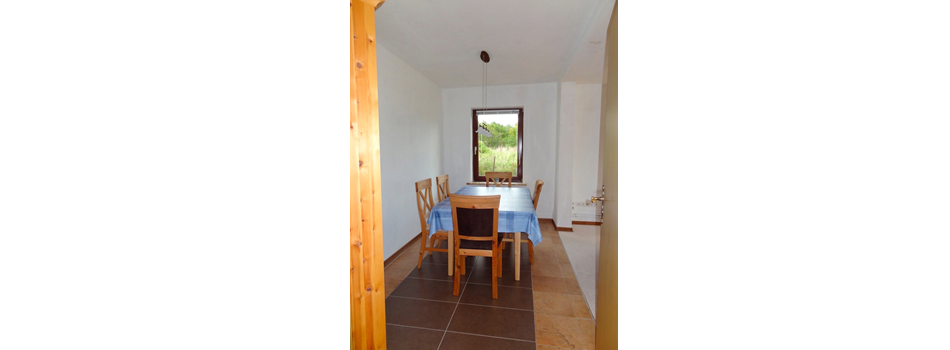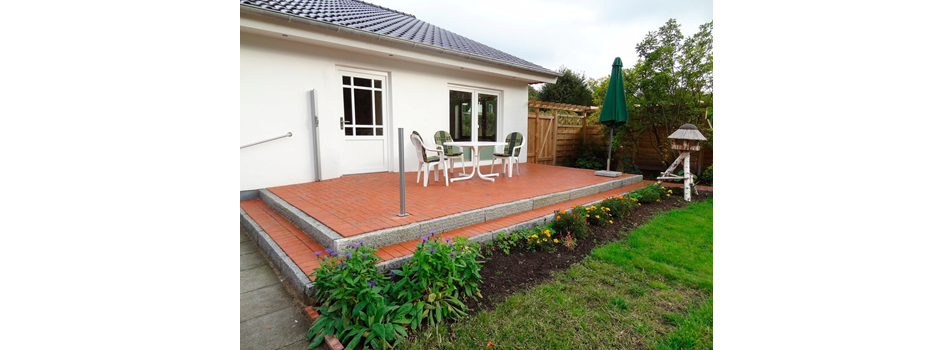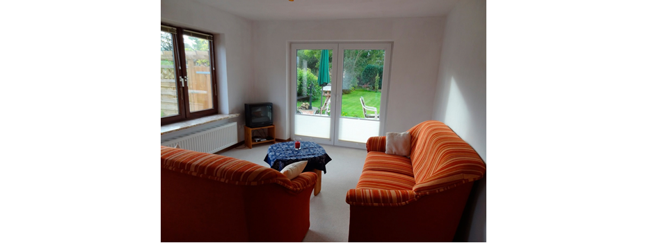 Die Barriere-freie ca. 60 m² große Ferienwohnung liegt im Erdgeschoss eines kleinen Hauses, das 2013 modernisiert und neu ausgestattet wurde. Sie ist ruhig gelegen und hat einen kleinen Garten. Bahnhof, Restaurant und Einkaufsmöglichkeiten (Bäcker und Supermarkt) sind dennoch zu Fuß in wenigen Minuten zu erreichen.